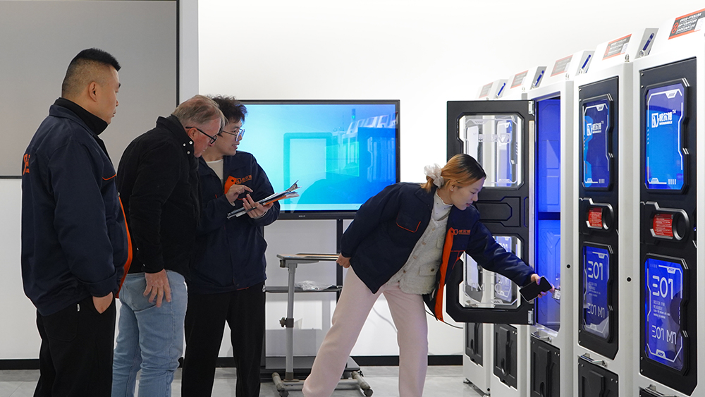本次接待由威尔博公司外贸部 负责人钟经理 全程负责。来访团队先后参观了威尔博的 实验室、测试中心、生产装配车间、研发技术中心 等关键部门,全面深入地了解了威尔博在电微分加药机、数字化加药系统、AI智能剂量控制等方面的自主研发实力。